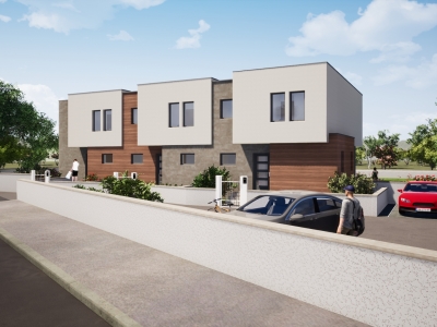 OBJEKT: Moderan stambeni objekt se sastoji od tri odvojena stana veličine od 112 do 119 m2. Objekt je projektiran na način kako bi pružio najviši komfor življenja te će se graditi materijalima visoke kvalitete (zidana konstrukcija + armirano betonski serklaži, fasada sa 15 cm stiropora, troslojno PVC izo staklo, aluminijske rolete, centralno podno grijanje…) S obzirom da se jedinice griju na samostalne dizalice topline zrak-voda, objekt ima nZEB (zgrada gotovo nulte energije) razred energetske učinkovitosti. Što znači da je energetska efikasnost stanova na najvišoj razini.